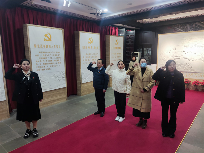 在党建基地,党员们瞻仰了秦起烈士铜像、第一支部会址群雕,参观了新中国成立后无锡第一面五星红旗升旗处。现场集中观看党史专题片《誓言颂》,回顾了中国共产党成立以来五个不同时期入党誓词的演变。在宣誓大厅,面对鲜红的党旗和神圣的誓言碑,党员们庄严重温入党誓词,铿锵而坚定的誓言回荡在大家的耳畔,全体党员接受了一次全面深刻的政治教育、思想淬炼、精神洗礼。