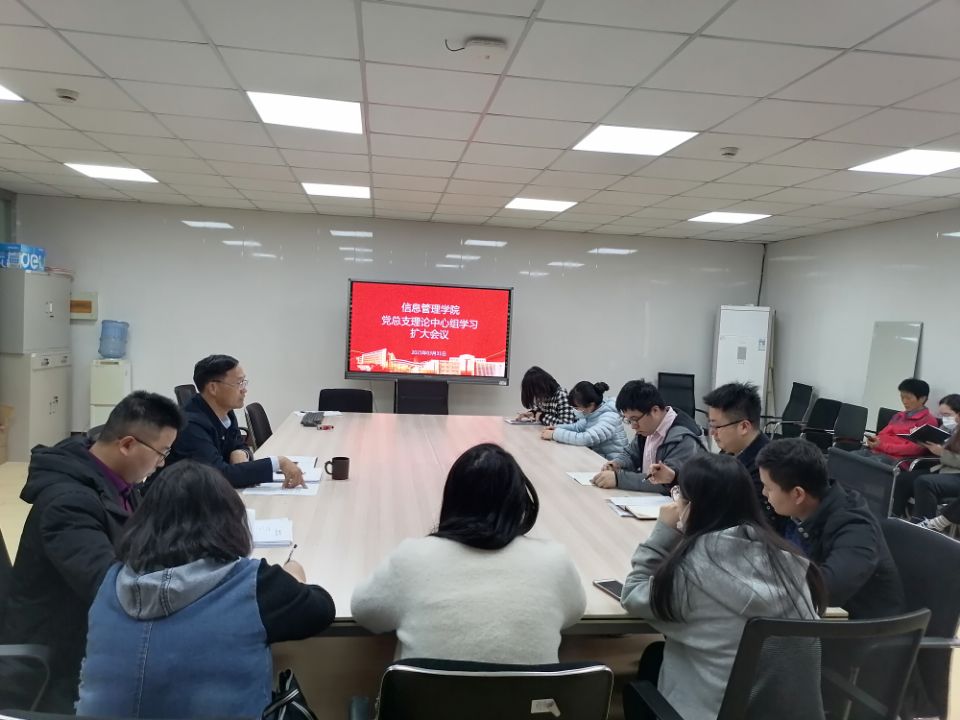 3月31日,信息管理学院在学院党员活动室召开党总支理论中心组学习扩大会议,学院全体教职工参加,会议由院长郑智飞主持。