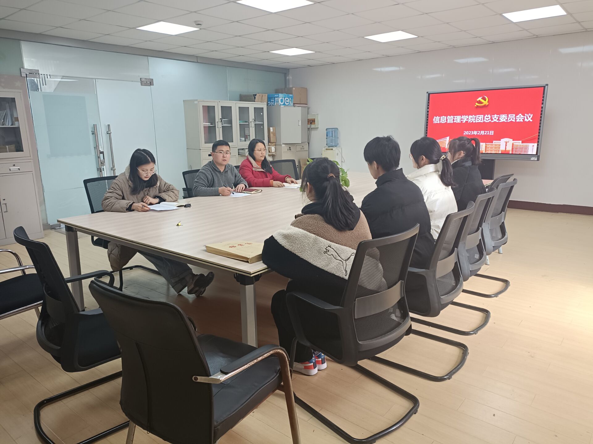 2月21日下午两点,信息管理学院团总支在学院三楼会议室召开学期初团务工作会议,总结去年工作,研究新学期学院共青团工作。学院团总支书记朱沛、组织委员王得雪、宣传委员杨际略等出席了会议。