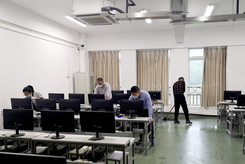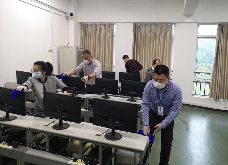 为认真贯彻落实学校防控有关要求,确保新学期机房环境安全,根据学校教学场所消杀规范,图文信息中心全体成员于4月19日上午开展中心机房场所消杀工作。部门成员打扫机房卫生并使用消毒水拖地、擦拭计算机设备和桌椅,完成了16个机房的消杀工作。后期,机房管理员每天将根据规范要求,开展机房日常消杀工作,为师生上课提供免洗洗手液,切实保障师生健康安全。