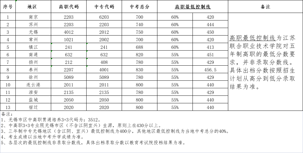 2023年学校在各市招生代码、最低控制线