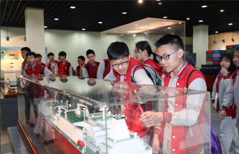 师生们分为四个小组,分别由招就处老师带领,有序参观了我校焊接实训中心、船模馆、航海模拟实训室、工业机器人、新能源汽车展示中心。在参观过程中,同学们显示出浓厚兴趣。在各专业教师精彩详细的讲解下,对相关专业和职业有了深入的了解。部分学生还亲自操纵航海模拟器,体验驾船出海的感觉。VR虚拟体验更是让同学们惊喜万分,纷纷排队体验。工业及机器人能够自动喷漆喷釉等,自动行走做各种活动,让同学们连连称赞。