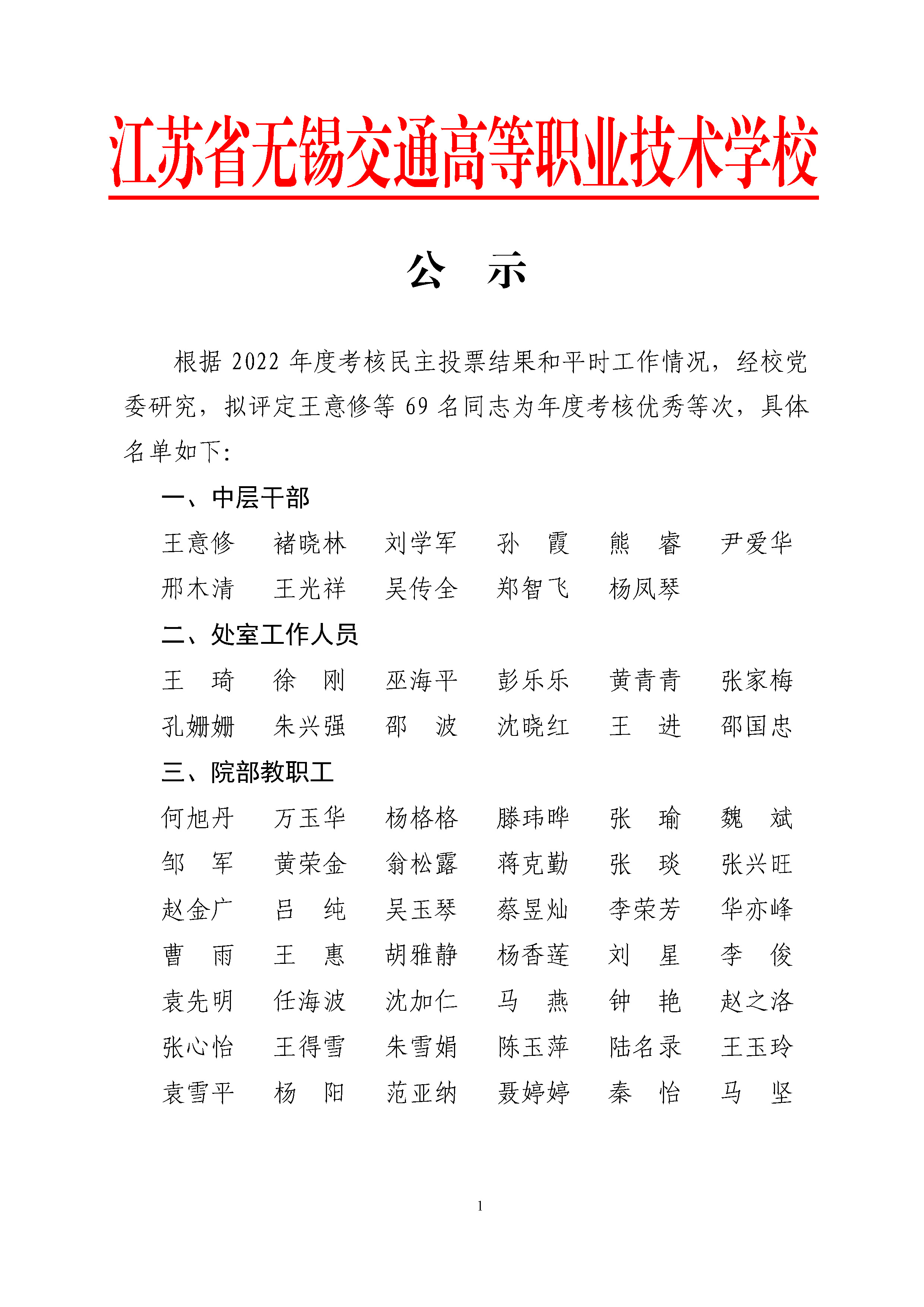 2022年度考核优秀等次人员名单公示